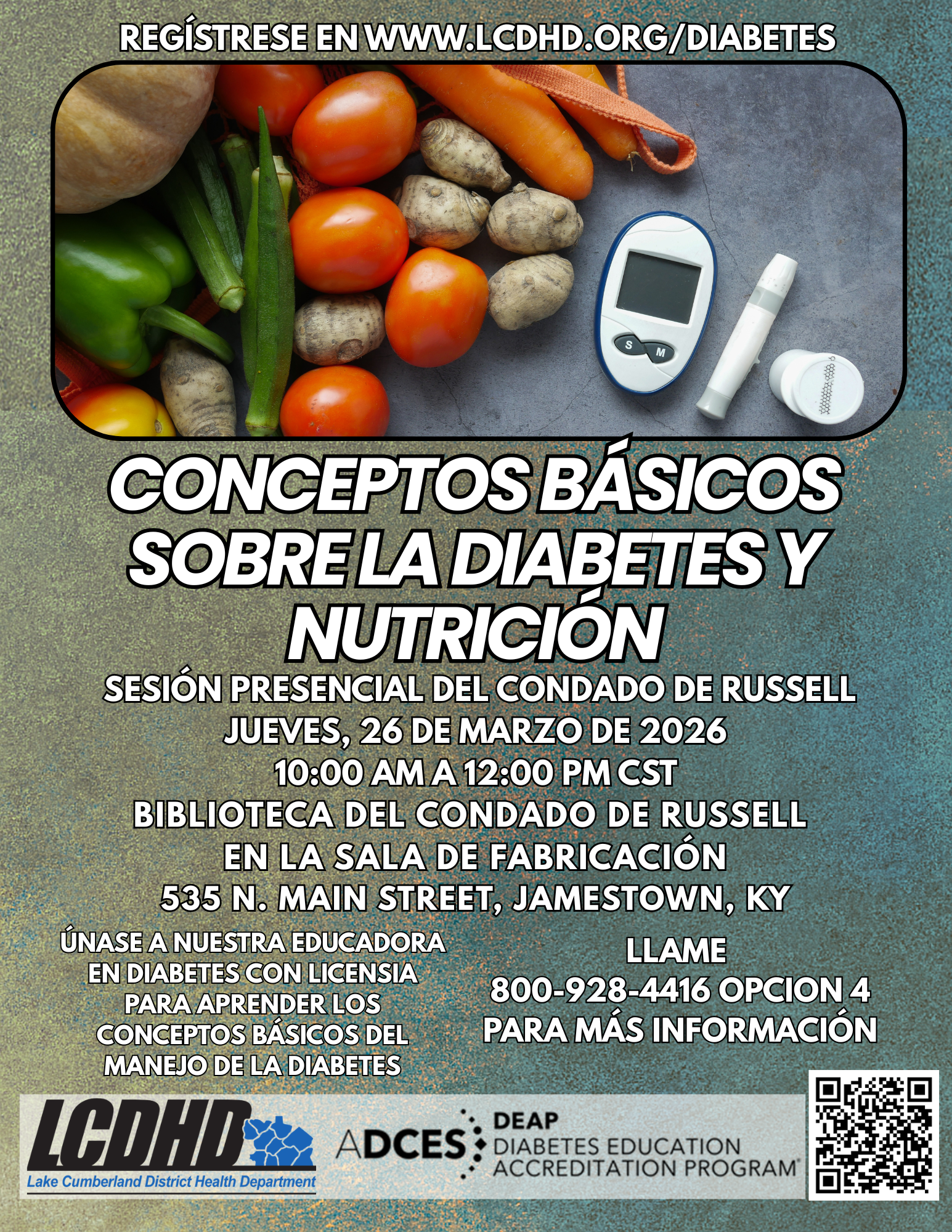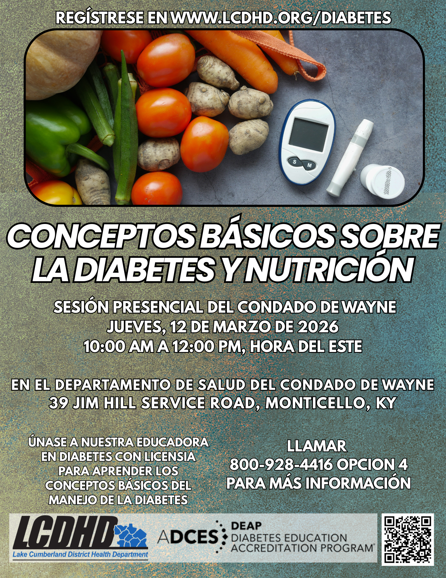 Si desea obtener más información sobre la diabetes, comuníquese con nuestro equipo de educación sobre la diabetes de LCDHD al 1-800-928-4416 Ext 1158.