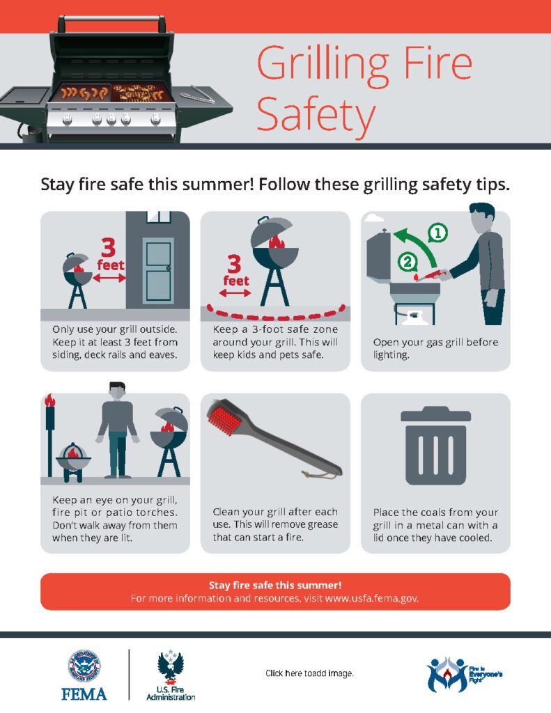 Follow these grilling safety tips to ensure a safe grilling season.  Click on the image below to enlarge it for easier viewing.