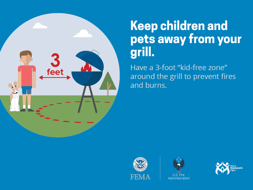 Prevent injuries to children and pets by establishing a 3′ kid free zone around your outdoor grill.
